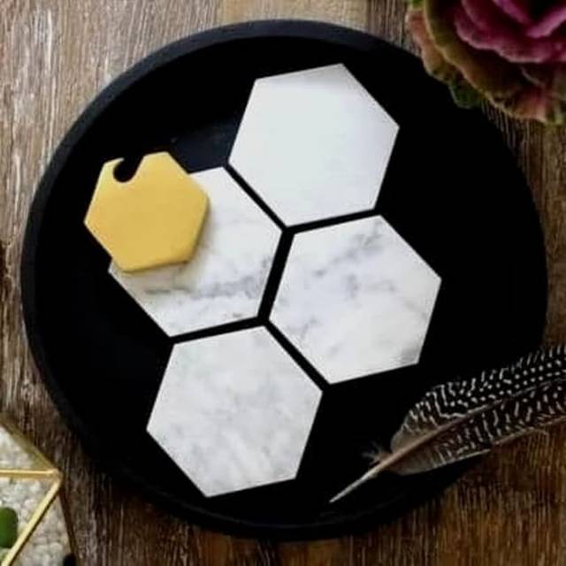 De Marble expertise in marble and granite. We are here to serve and give you an elegant and sophisticated marble look for your home living or surrounding with the most affordable price and best quality.Our marble or granite is handmade and formed from natural stones. Therefore, every product differs slightly in size, veins/patterns, and colour.------------------------------------Carrara Hexagon Marble Coaster | Tatakan Gelas Hexagon Marmer Carrara------------------------------------Size | Ukuran: Diameter +- 10 cmWidth | Tebal: +- 1,8 cm------------------------------------Colour Details | Penjelasan Warna:Carrara: greyish white (putih abu)-------------------------------------Thank you and happy shopping! :) For other assistance or custom order, please chat us.PERHATIAN:Untuk pengiriman menggunakan kurir selain Grab/Gojek, WAJIB menambahkan bubble wrap ketika melakukan pembelian. Berikut link untuk penambahan extra bubble wrap: https://shopee.co.id/Bubble-Wrap-i.43581076.4351159870#demarble #marble #marmer #granite #granit #talenanmarmer #tatakanmarmer #nampanmarmer #marbledecor #marblecoaster #marbletray #marble