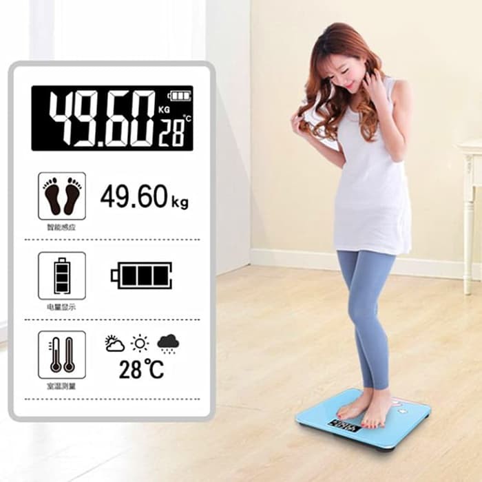 Tersedia Warna 1....Hitam.2....Kuning3....Abu-abuHarap memberi keterangan warna yg di inginkan pda kolom keterangan.jika stock warna yg di inginkan kosong, maka akan dikirimkan warna stock yg tersedia.Timbangan elektronik yang dapat memuat berat tubuh hingga 180kg. Menggunakan 4 digit indikator LCD. Timbangan beralaskan tempered glass ini sangat kokoh dah kuat.FeaturesLCD DisplayTimbangan ini memiliki layar LCD sebagai penunjuk angka. Berat akan otomatis di ulang ke nol pada saat tidak di gunakan.180kg LoadTimbangan ini dapat mengukur berat badan hingga 180kg dengan tingkat keakuratan 100gram.Battery PowerTimbangan ini di tenagai 2 buah baterai AAA.High Quality MaterialTimbangan ini di buat dengan material ABS berkualitas yang di lengkapi juga dengan 6mm tempered glass pada bagian platform timbangan. Membuat timbangan ini sangat kokoh dan kuat.Easy To UseDesain dengan bentuk kotak dan mudah untuk dibawa kemana saja.Technical SpecificationsTipe Baterai2 x AAADimension280 x 280 x 20 mmOthersDisplay: LCDUnit: KG / LB / STCapacity: 180kgAccuracy: