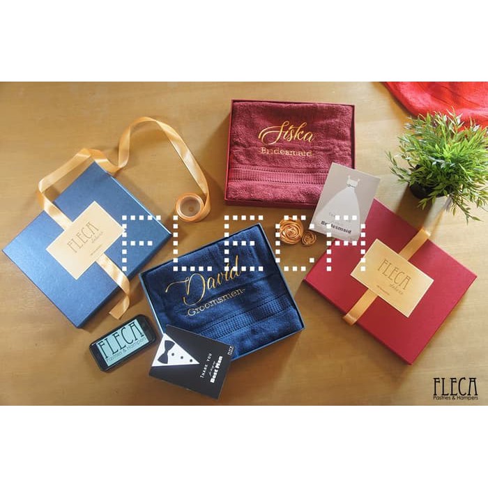 HANDUK BORDIR 1pc + GIFT BOX + CardBrand Handuk: FLECA DELUXEUkuran Handuk 70x135 cmBordir Nama bisa CustomUntuk pemesanan cepat silakan DM dahuluGift Box kualitas bagus. (Hard Box) Warna RANDOMHI-QUALITY EMBROIDERYA. Bordir:Menyesuaikan Permintaan & sesuai desain readyPilihan WARNA Handuk: 1. Maroon2. Navy KOSONG3. Coklat tuaTidak mencantumkan = RANDOMC. Pilihan Card:1. Happy Anniversary2. Happy Wedding3. Happy BirthdayTidak mencantumkan = RANDOMCantumkan di keterangan pemesanan yang LENGKAP:Contoh:A. Happy BirthdayPapaB3C3Pesan di kartu: DMNB:1. TOLONG dituliskan yang lengkap nama yang akan dibordir, bila tidak menuliskan Mr. & Mrs. maka kami tidak akan mebuliskan Mr. & Mrs. juga 2. Pesan di kartu handwriting, jadi kalo dikirim ke alamat sendiri disarankan ditulis sendiri.3. TOLONG membaca deskripsi produk sebelum order.4. Butuh cepat & sudah DM, tolong ditulis di keterangan waktu pemesanan.5. Pesan di kartu tidak cukup di keterangan, tulis aja pesan: DM. Karena kita ga cek DM satu per satu.6. Packing PASTI diusahakan seaman mungkin, tetapi bila ada kerusakan box dll di luar tanggung jawab kami.7. Membeli = Menyetujui T&C kami, NO CANCEL8. PO terhitung HARI KERJA SAJAMohon pemesanan sesuai instruksi untuk menghindari kesalahan.Thank you Cocok untuk:- kado pernikahan - kado ulang tahun - kado anniversary - seserahan - DllFAQ:1. Ready? Warna "..." ready?READY, kecuali ada keterangan kosong di atas2.Proses brp hari?Tolong dibaca di atas ya.. Karena sudah ada keterangannya.Butuh lebih cepat silakan DM.3. Dapatnya 1 handuk atau 2 ya?Dibaca keterangan di atas ya karena sudaha ada keterangannya dpt apa saja..4. Sudah termasuk bordir?SUDAH. Sudah ada keterangannya di atas5. Kapan dikirim? Proses sampai mana?Sesuai waktu PO KECUALI SUDAH ADA PERJANJIAN DI