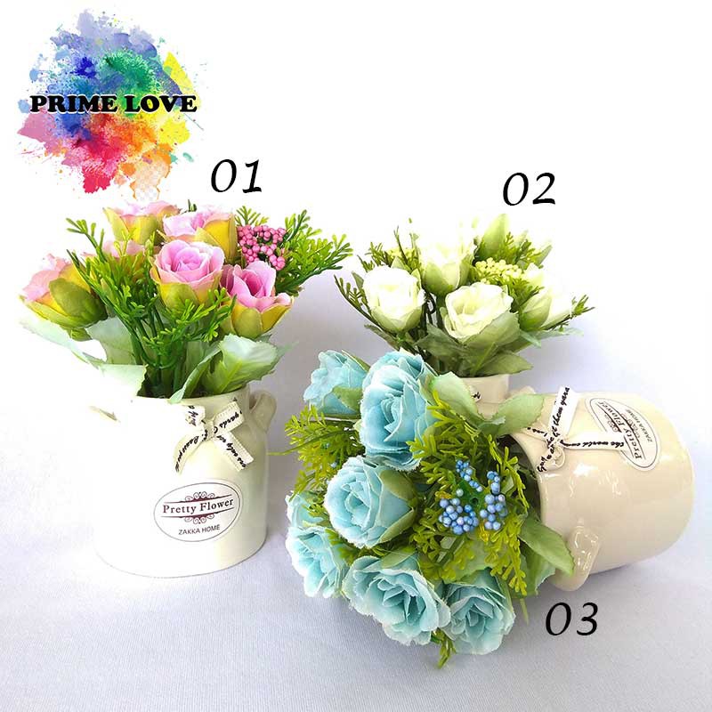 Name: Bunga Plastik Mawar Artificial Vas Keramik Unik Lucu Pita Imut Hiasan Meja - Vbk11