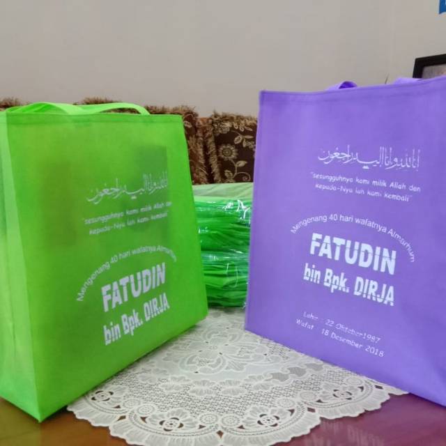 Kantong ramah lingkunganBahan: Spunbond tebalUkurankurang lebih: P30 x L10 x T35. mohon di maklumin bila ada kekurangan di size, trkadang ada kurang 1cm man.Satu kilo muat 40-50pcsGratis sablon min order 50pcsWarna: Maroon, cream,hijau,ungu,biru.pink, merah, tosca, navy, mocc