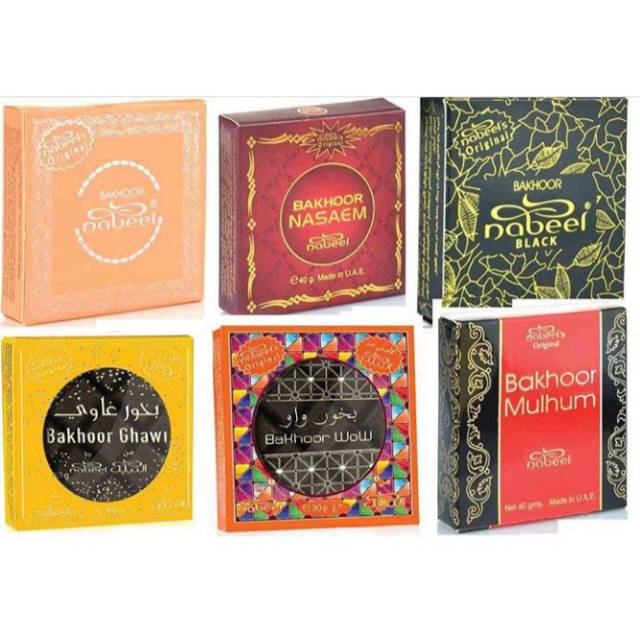 Aneka Bukhoor nabeel 6 varianNetto 40grNasaem, Mulhum, nabeel black, wow, ghawi, dan original..Original Dubai UAE#nabeel #bukhurarab #bukhurnabeel #dupa #dupawangi #dupana