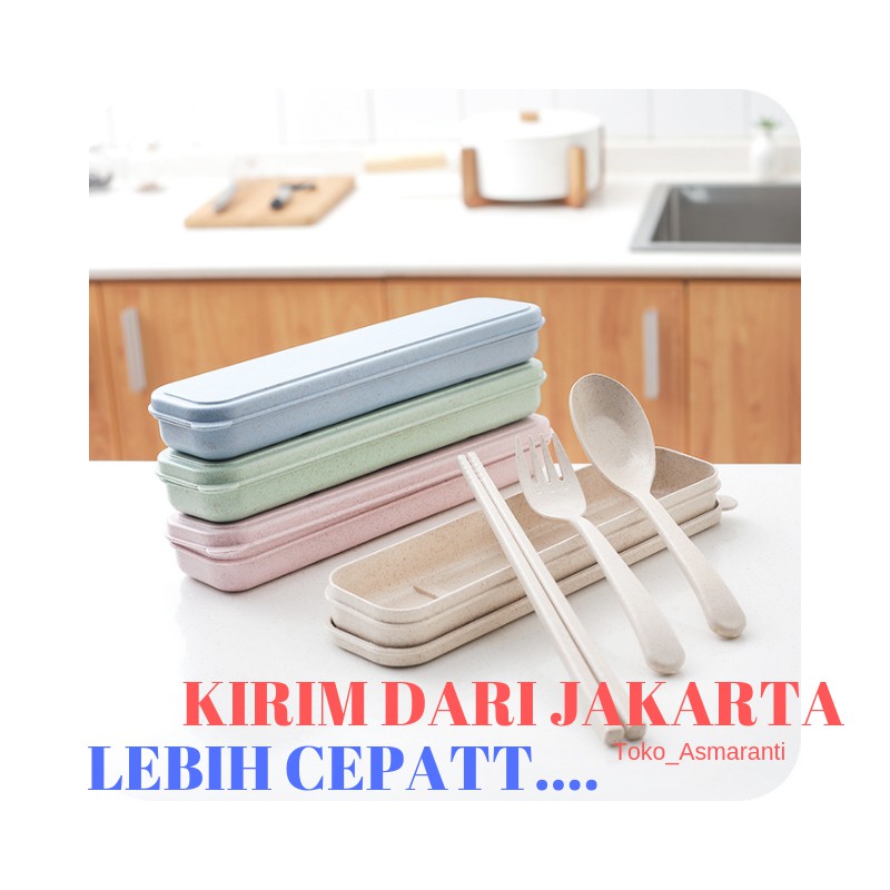 Name: Sendok Garpu Sumpit Portabel Set Travel Cantik Bahan Jerami Gandum (ada Kotak Kerdusnya)