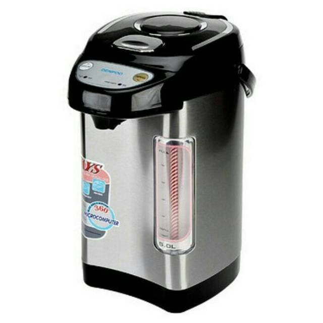 Denpoo DEP-858VT - Electro Pot 5 Liter merupakan jarpot atau thermos serbaguna dengan performa yang handal. Memiliki desain yang elegan dan modern dapat menambah nuansa mengagumkan di dalam ruangan Anda. Selain itu, Denpoo DEP858VT - Electro Pot 5 Liter dilengkapi dengan level air pada bagian samping bodi-nya sehingga memudahkan Anda dalam menjangkau kapasitas air yang berada di dalam Denpoo DEP858VT - Electro Pot 5 Liter.Kapasitas : 5 LiterGaransi : 1 TahunAutomatic switch-offStainless Steel tubOver-heat protectionWater level windowNama Produk : Denpoo Electro PotTipe : DEP-858VTBahan Material Luar : PlastikBahan Material Tabung : Stainless SteelKapasitas : 5 LiterDaya : 700 WattTegangan AC : 220 Volt / 50 HzDimensi (P x L x T) : 24 cm x 24 cm x 38.6 cmBerat : 6 KgWarna : SilverAnti Spill :