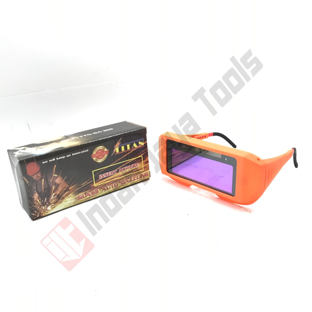 Kacamata Las OtomatisBrand : TITANFilter Size : 108 x 51 x 5.5 mmActive Viewing Area : 90 x 34 mmLight Shade : DIN 3Dark Shade : DIN 11Shade Control : NOSwitching Time : 5 / 10000 SSensitivity Adjustment : NODelay Time : 0.2 SPower Supply : Lithium Battery & Solar PoweredRated Capacity of Li-Battery : 60 mAHReplaceable Battery : NOOperating Temperature : -20 - 65 CArc Sensor : 2Mask Material : PA / PPUV / IR Protection : up to shade DIN 16 at all timeGagang dapat distel untuk panjang atau pendekGagang dapat diganti dengan karet apabila tidak enak memakai g