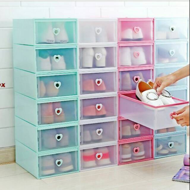 Sliding shoe box adalah kotak sepatu dengan design model sliding atau model laci.Keluaran baru ini kualitas bahan lebih tebal dan bagus, warna juga lebih soft.Selain untuk tempat sandal atau sepatu, sliding box juga bisa dipakai untuk tempat pernak pernik rumah, pakaian bayi, kosmetik, aksesoris wanita, bumbu dapur dan sejenisnya.Uniknya, sliding box ini bisa sambung menyambung, bisa disambung ke atas dan juga bisa disambung ke atas. Jika sudah disambung maka sliding box berubah jadi seperti lemari. Box dikirim dalam bentuk terbuka, untuk cara pasang dan cara menyambung box bisa lihat di gambar.Dengan panjang 31 cm muat dari sepatu / sandal anak-anak, maupun dewasa, sepatu hak tinggi, sepatu olahraga & sepatu priaBox mudah dibuka tutup, cukup masukin jari tangan ke bolongan yang di depan lalu tarik keluar, memudahkan anda menyimpan dan mengambil barang yang diinginkan. Ada lobang anginnya, gak bikin lembab sepatu kesayangan anda.Sliding box sangat cocok bagi yang sering pindah-pindah tempat tinggal, Saat pindah tempat tinggal, cukup lepas sambungan box dan lipat seperti semula, Jika sudah dibuka jadi rata, box jadi mudah dibawa dan disimpan. Anda tidak perlu membeli kotak sepatu baru tiap pindah tempat tinggal, irit uang.Box bisa ditempatkan dikamar tidur, dapur, ruang tamu, bahan di kolong di kamar tidur juga bisa.Cara pasang : Ada di gambarMaterial : PlastikSize : 31 x 20 x