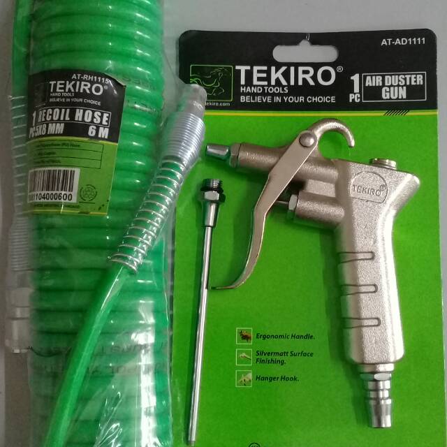 Selang Recoil + Air DusterTEKIROUntuk selang terdapat 2 warna Hijau dan Kuning( namun untuk warna tidak dapat memilih , akan dikirim sesuai dengan stok yang ada )#selang #selangangin #selangkompressor #selangkompresor #recoilhose #tekiro#selangrecoil#airduster #semprotanangin#tembakanangi