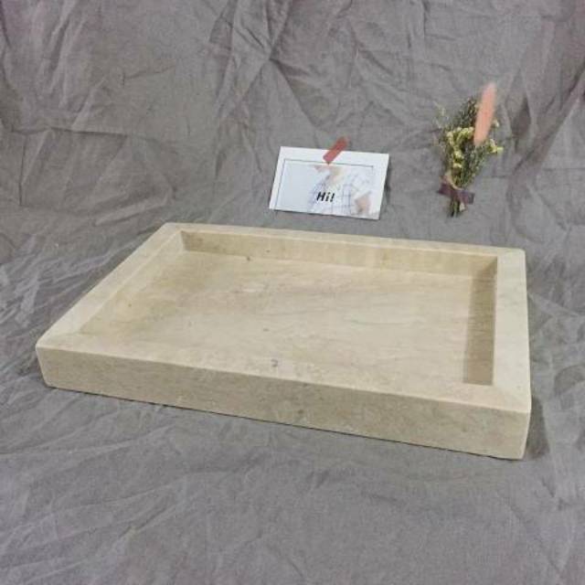De Marble expertise in marble and granite. We are here to serve and give you an elegant and sophisticated marble look for your home living or surrounding with the most affordable price and best quality.Our marble or granite is handmade and formed from natural stones. Therefore, every product differs slightly in size, veins/patterns, and colour.------------------------------------Beige Marble Tray | Nampan Marmer Beige------------------------------------Size | Ukuran: +- 25 x 15 x 4 cm------------------------------------Colour Details | Penjelasan Warna:Beige: cream/beige/browny beige (krem/krem kecoklatan)-------------------------------------Thank you and happy shopping! :) For other assistance or custom order, please chat us.PERHATIAN:Untuk pengiriman menggunakan kurir selain Grab/Gojek, WAJIB menambahkan bubble wrap ketika melakukan pembelian. Berikut link untuk penambahan extra bubble wrap: https://shopee.co.id/Bubble-Wrap-i.43581076.4351159870#demarble #marble #marmer #granite #granit #talenanmarmer #tatakanmarmer #nampanmarmer #marbledecor #marblecoaster #marbletray #marble