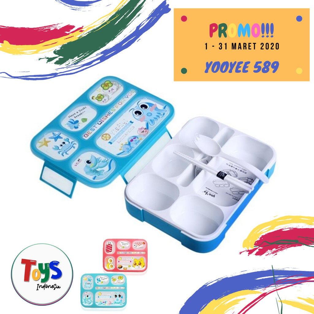 Name: Sale Promo !! Lunchbox Yooyee 589 Pink Blue Bento 5 Sekat - Kotak Bekal Anti Tumpah