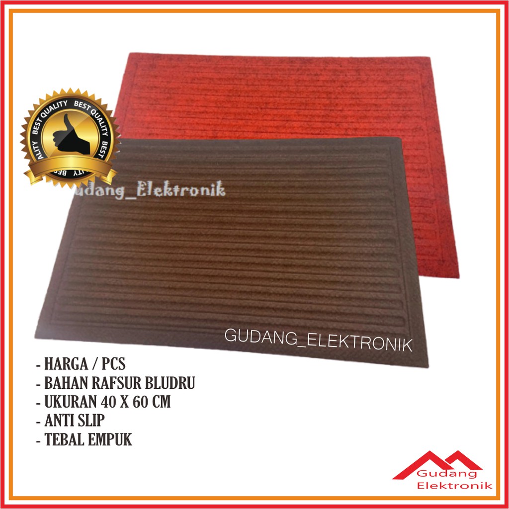 Keset/karpet anti terpeleset dengan bagian bawah berbahan karet & bagian atas berbahan bludru. AMAN, EMPUK, TEBAL, AWET.Pilihan tepat untuk mencegah BAHAYA terpeleset dimanapun, di dapur, kamar mandi, teras, tempat wudhu, bathub, kolam renang, taman, garasi, bengkel, pabrik dan lainnya, menjamin keamanan & keselamatan bersama dengan harga ekono