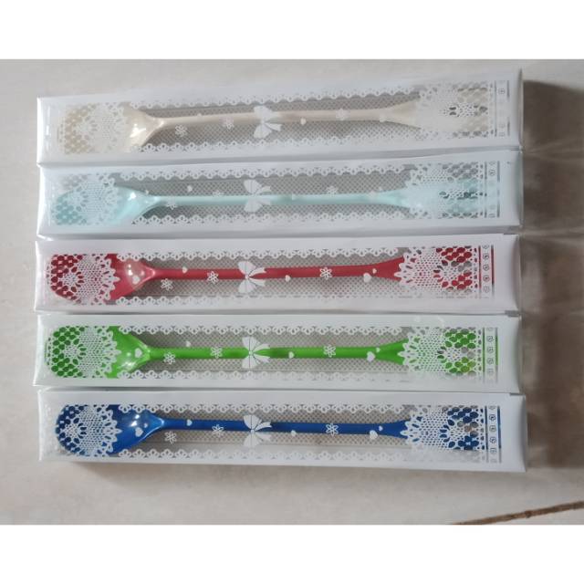 Deskripsi :- sendok jus aneka warna terbuat dari plastik- ukuran panjang sendok 19cm- dikemas mika cantik bermotif- bisa untuk souvenir nikah, aqiqah dll- minimal order 100pcs- 100pc hany