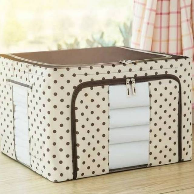 Harga Pabrik Perlengkapan di Kota Surakarta Storage Box Motif Polkadot Rangka Baja Double Zipper Bahan Oxford Tebal Lemari Baju Serbaguna dari Bright Harmoony Kota Tangerang